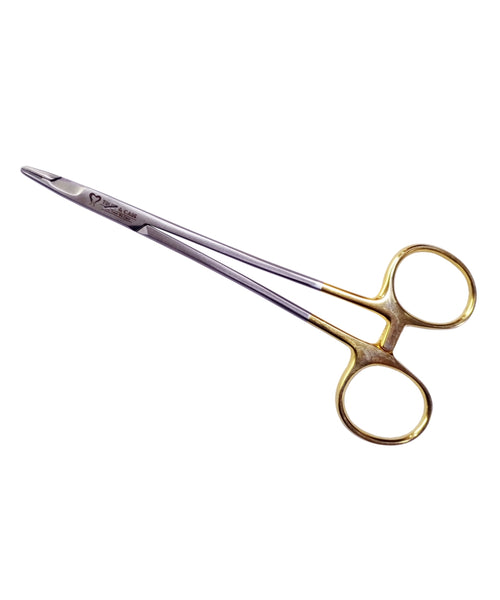 Used to grasp suture needles during suturing when pushing/pulling the needle and suture through tissue. It has short serrated jaws at the distal end to provide better grip of the needle and it is available in a wide variety of sizes and designs.