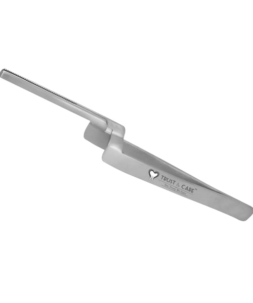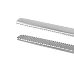 Ideally used for holding articulating paper when checking of dental restorations and teeth. Holding the paper with an instrument rather than fingers assures better and complete coverage of the restoration or teeth to be verified. Tweezer like design two cojoined blades with serrated tips at the working end.