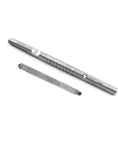 The bone scraper enables you to scrape, collect and transplant the patient’s own bone.