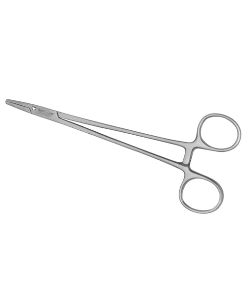 Used to grasp suture needles during suturing when pushing/pulling the needle and suture through tissue. It has short serrated jaws at the distal end to provide better grip of the needle and it is available in a wide variety of sizes and designs.