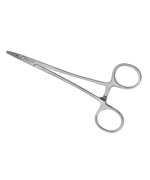 Used to grasp suture needles during suturing when pushing/pulling the needle and suture through tissue. It has short serrated jaws at the distal end to provide better grip of the needle and it is available in a wide variety of sizes and designs.
