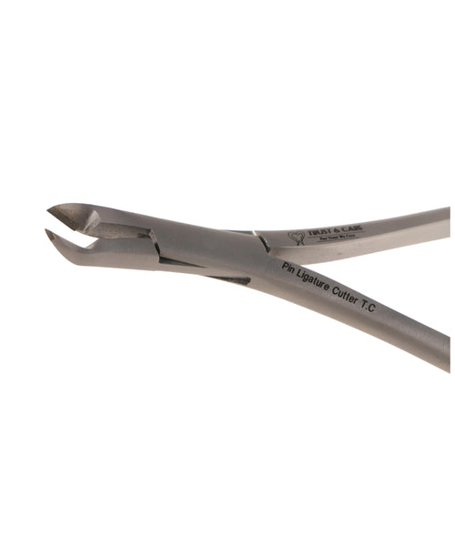 Pin and ligature orthodontic cutters are designed to cut soft wires, elastic ligatures and pins on orthodontic appliances.Its tip is made of tungsten carbide. CONTENT: 1 x PLIER T.C