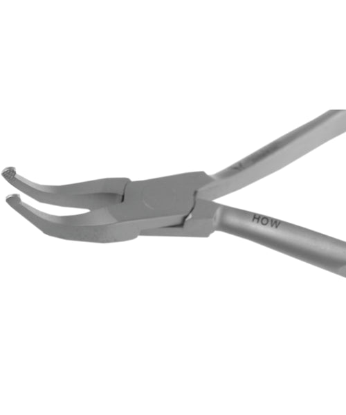 How plier is used  for removal and placement of the arch wires. It has round and serrated tips. 45° angled tips for easyer access to lingual and others posteriors areas.