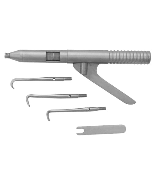 The Crown remover is a spring-loaded mechanical device to remove the bonded crowns and bridges by an intensive impulse.