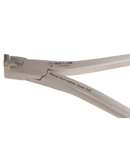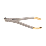The cutter provides easier accessibility to the confined reas of the mouth. The Design of this cutter allows distal end arch wires to be cut in the patient's mouth safely. It cuts the wire and safely holds the distal end. Capacity: Rectangular wires upto .021" x .025". Round wires upto .020".