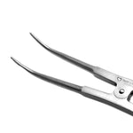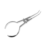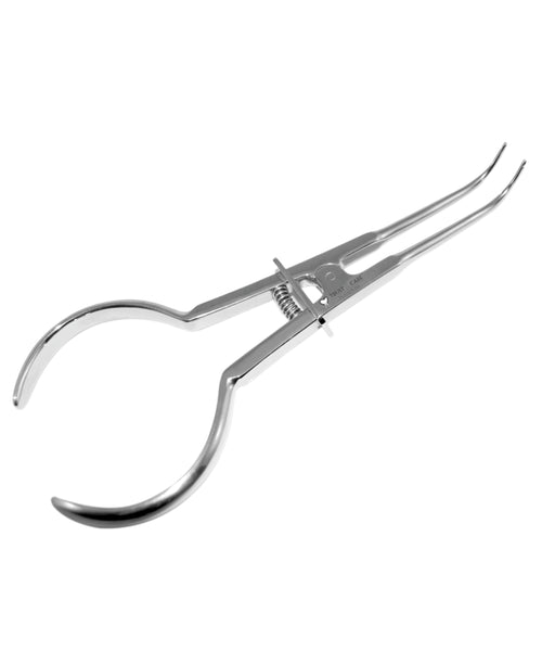 For the insertion and removal of rubber dam clamps. With small projections at the working end that fit into corresponding holes in the rubber dam clamp. With a sliding lock mechanism that locks the handles in position while the operator moves the rubber dam clamp around the tooth.