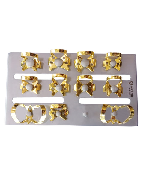 Rubber Dam Clamps are used to isolate the operating site (one or more teeth) to protect the oral tissue from saliva or other fluids. Our 11 pcs set contains comprehensive range of clamps used in restorative dentistry.