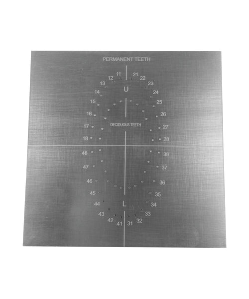 A useful way to determine exactly where to punch the rubber dam hole based on tooth location.Universal template design for both Deciduous & Permanent Teeth