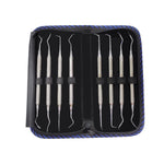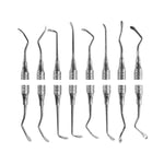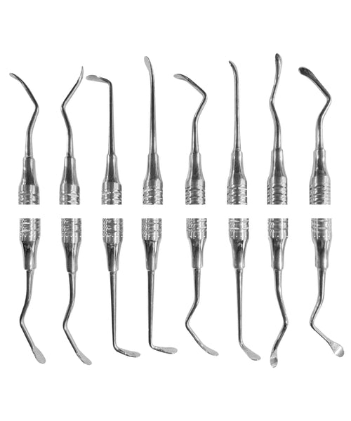 Sinus Lifting Instrument Set of 8 In Pouch is used during a sinus lift procedure to separate/reflect the Schneiderian membrane from the maxillary bone and to elevate the membrane for implant site preparations. Elevators feature a more round, smooth tip for lifting the sinus with minimal puncture risk.